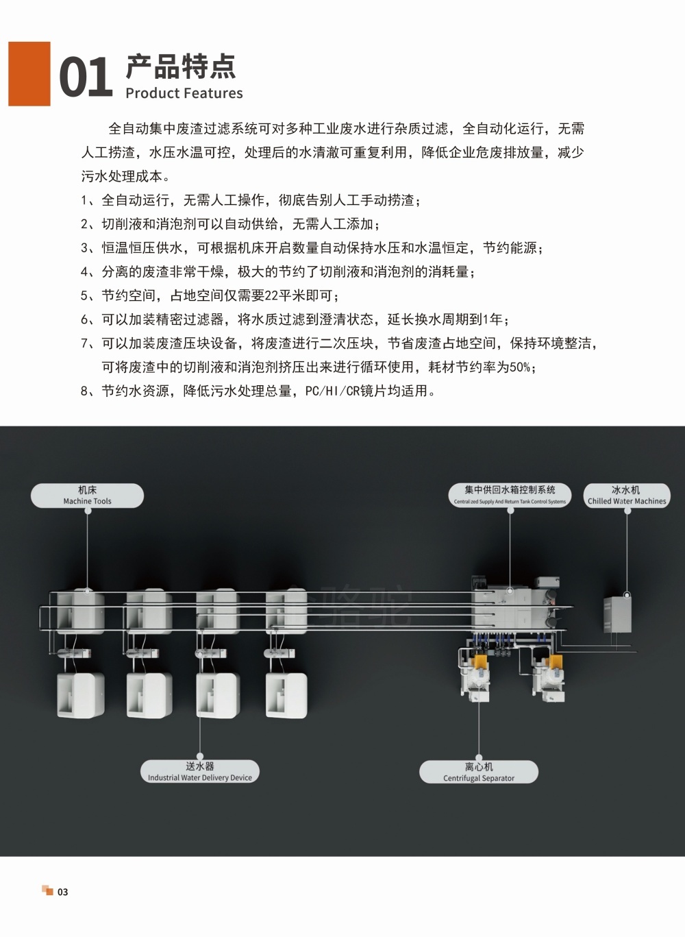 全自動(dòng)集中廢渣過(guò)濾系統(tǒng)可對(duì)多種工業(yè)廢水進(jìn)行雜質(zhì)過(guò)濾,全自動(dòng)化運(yùn)行,無(wú)需人工撈渣,水壓水溫可控,處理后的水清澈可重復(fù)利用,降低企業(yè)危廢排放量,減少污水處理成本。